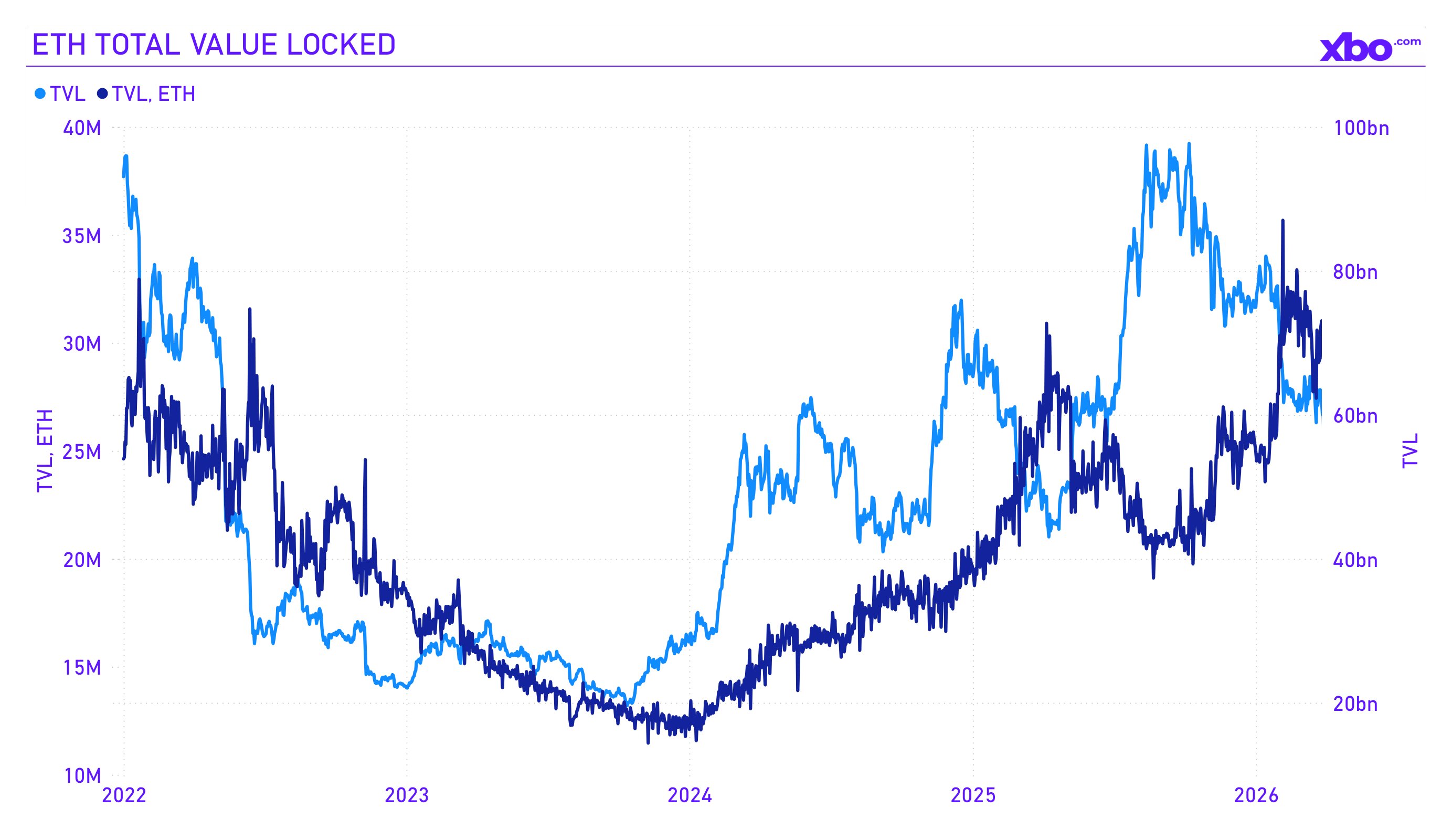 One of the key takeaways from Q1 2026 is how it exposed the gap between Ethereum's price dynamics and the state of its ecosystem. The price fell, yet the amount of ETH in DeFi grew, and the volume of stablecoins on the network increased.